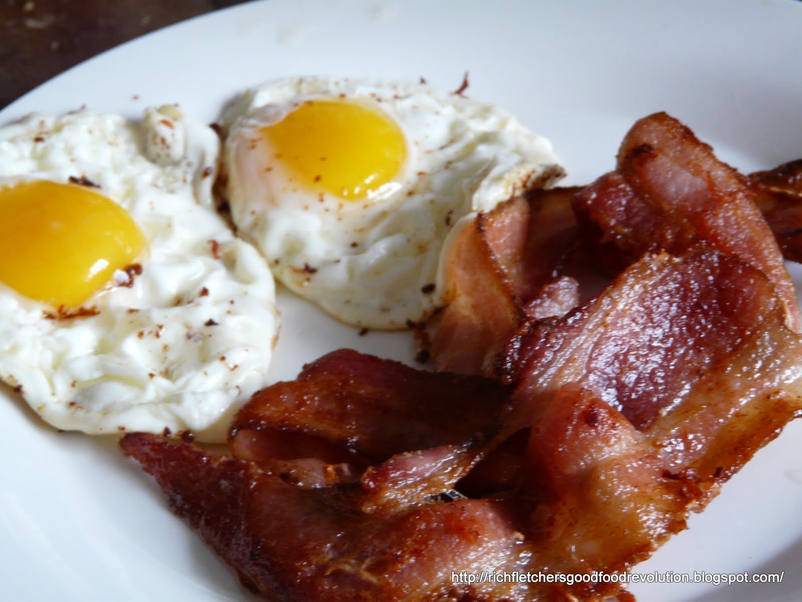 | Quick brunch , free range eggs and butcher's bacon . |